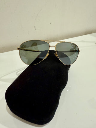 Gucci GG 0137S Gold Metal Frame Oversized Gray Lens Aviator Sunglasses