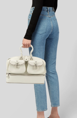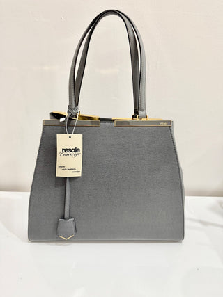 Fendi 2Jours Gray Textured Leather Double Shoulder Top Handle Handbag