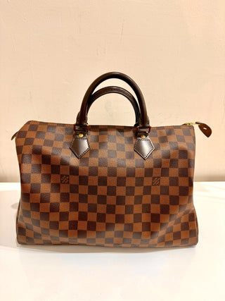 Louis Vuitton Damier Ebene Speedy Tote Bag Brown Womens Large Size 35