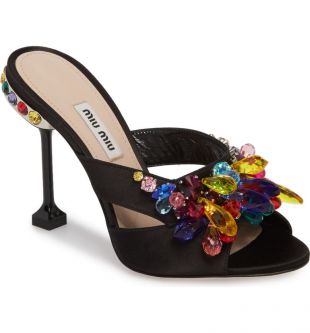 Perfect for adding a touch of glamour to cocktail dresses or tailored looks, these Miu Miu mules blend elegance, artistry, and high-fashion allure.