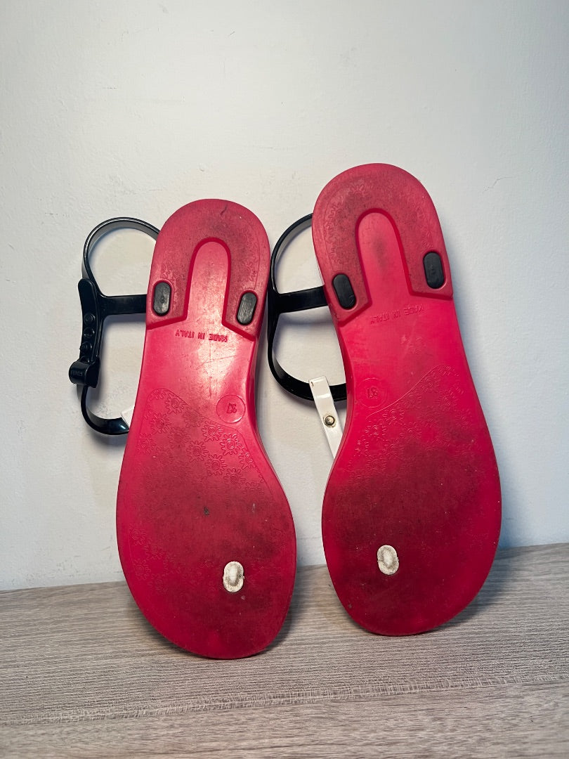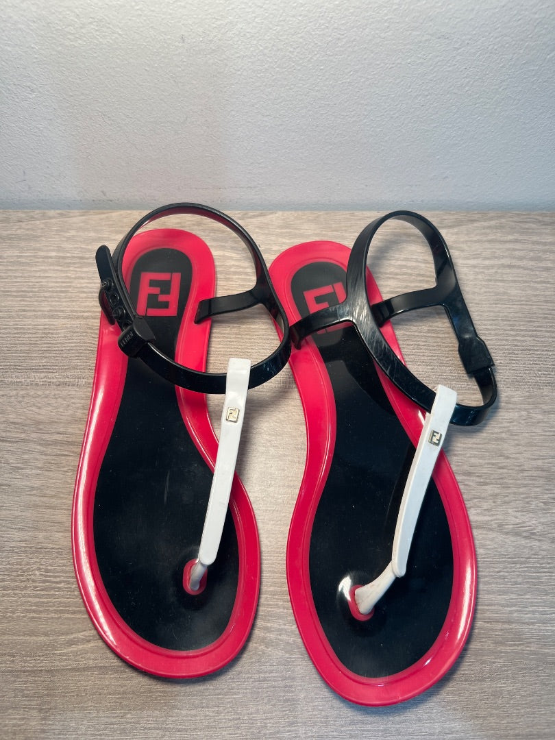 Fendi Zucca FF Logo Jelly Thong Strap Sandals Pink/Black/White Women's EU 37