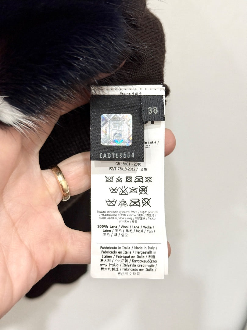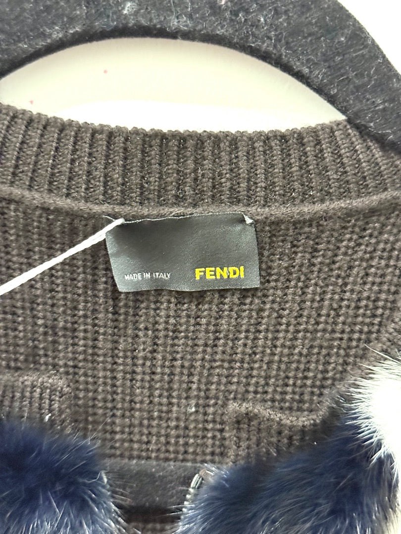 Fendi Wool Mink Fur Paneled Zip Front Sweater Brown/Black Women's 38 IT / US 2