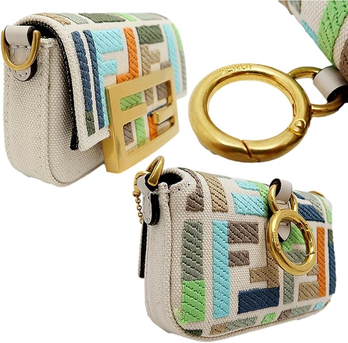 Fendi Nano Baguette Charm Bag with Colorful Embroidered Canvas FF Motif.