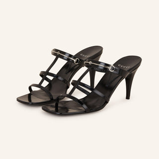 NWOT Gucci Horsebit 75mm Leather Slip On Heeled Strappy Mule Black Women's EU 40