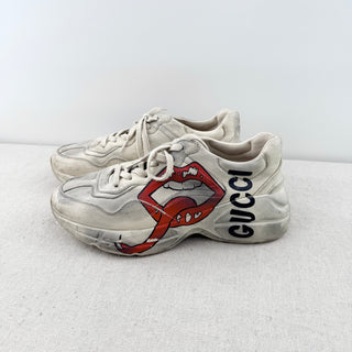 Gucci Rhyton Leather Sneaker Maxi Mouth Distressed Sneaker Cream Men's EU 38