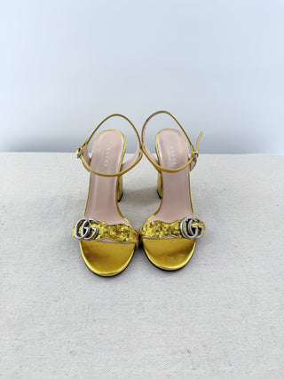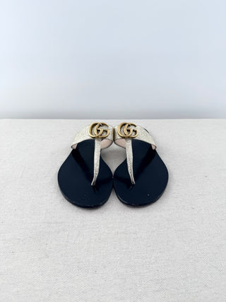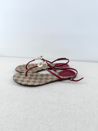 Gucci Monogram Canvas and Leather Thong Sandals w/ Heart Buckle Tan EU 39
