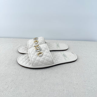 NWOT Gucci Horsebit GG Quilted Padded Leather Flat Slides White Women's EU 36.5