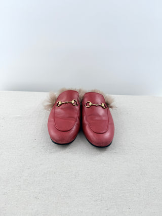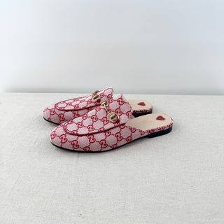 Gucci GG Logo Canvas Princetown Horsebit Flat Mules Pink Red Women's Size EU 40