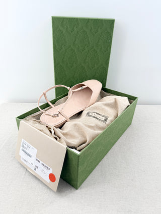 Gucci Vernice Crystal Patent Leather Double G Ballet Flat Skin Rose Womens EU 39