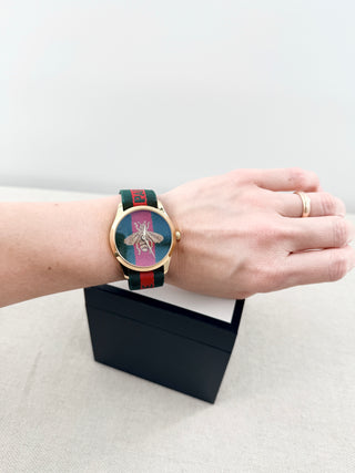 Gucci vintage watch 3000 black dial gold plated roman numeral bezel
