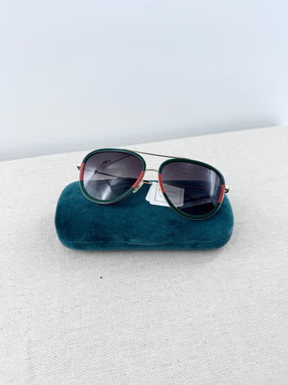 Gucci GG 3784 Black Gold Turquoise Acetate Frame Gray Lens Cateye Sunglasses
