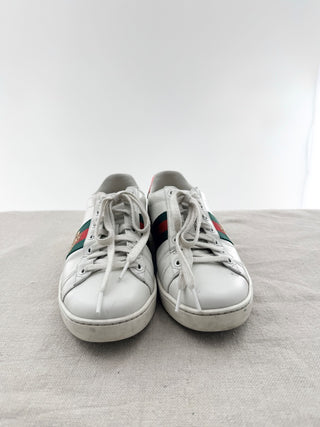 Gucci Calfskin Leather Re-Web Low Top Sneakers White Pink Womens Size EU 41