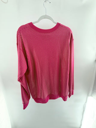 Gucci perforated knit sweatshirt featuring an allover micro-dot texture and metallic GUCCI logo across front, M
