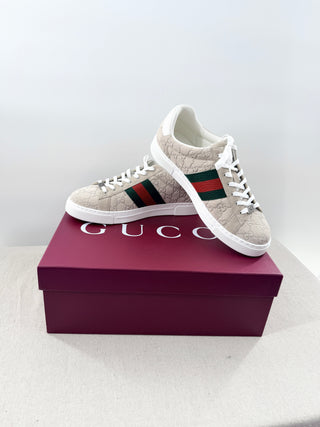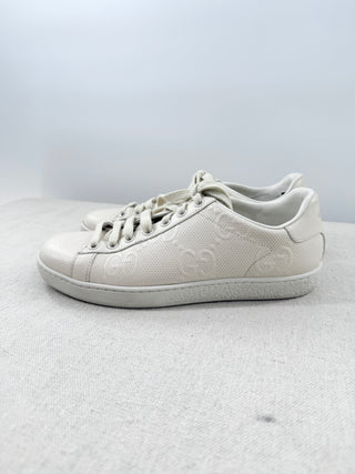 Gucci Ace GG Embossed Leather Low Top Comfort Sneakers Cream Women's Size EU 36