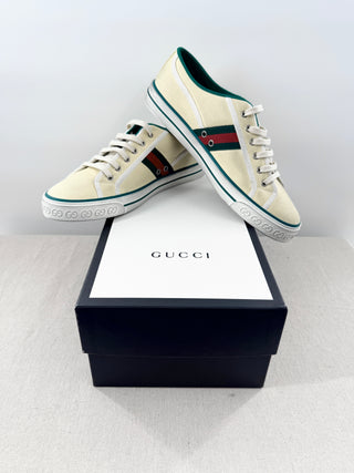 NWT Gucci Canvas Low Top Tennis 1977 Sneaker Cream Green Women's Size US 12