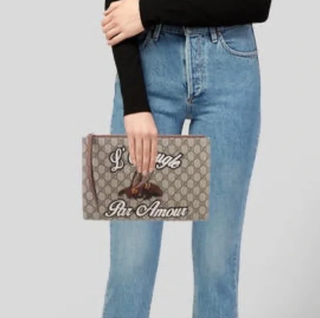 Gucci GG Supreme L'Aveugle Par Amour Zip Pouch Clutch Bag Beige Monogram Canvas