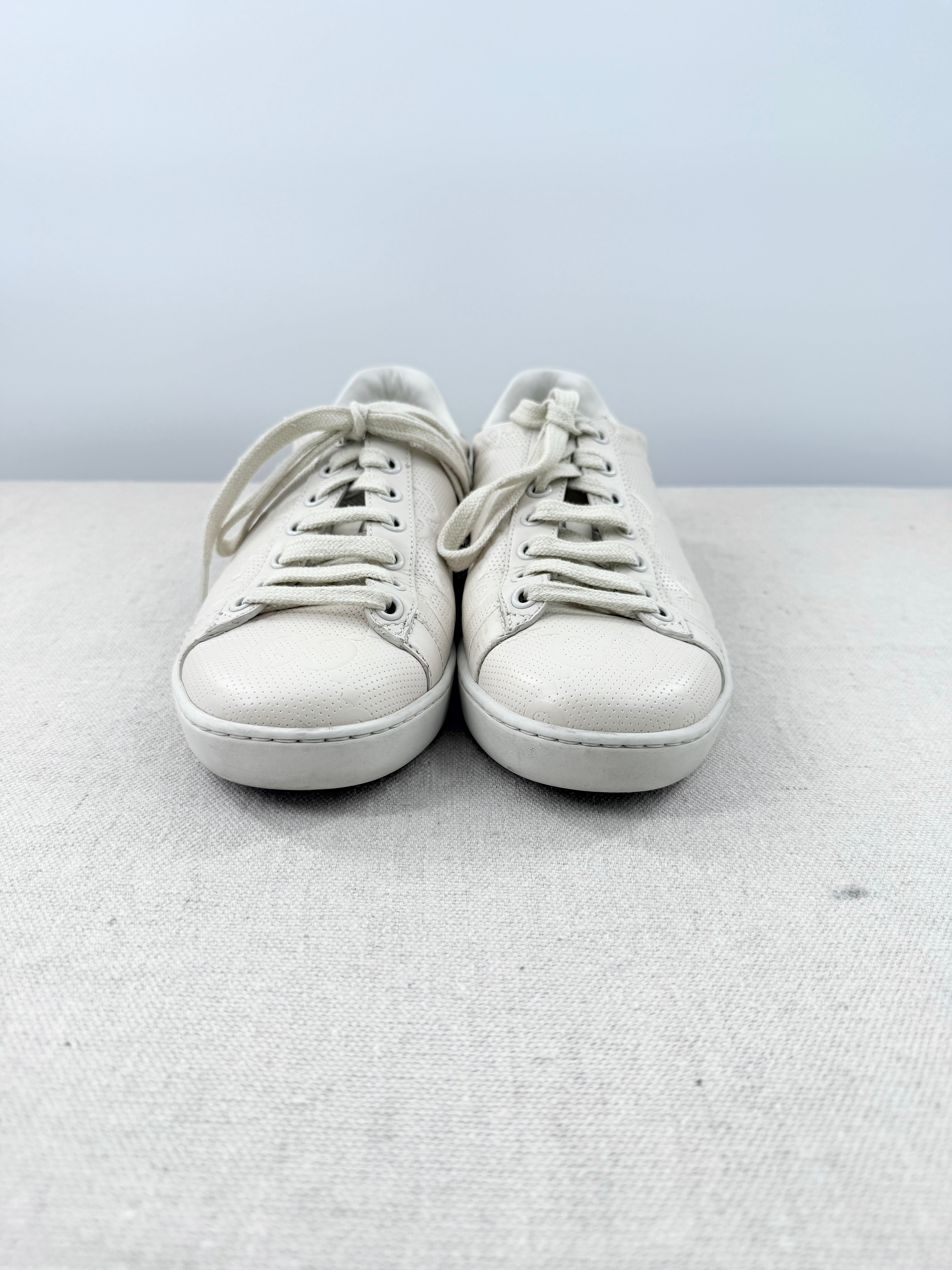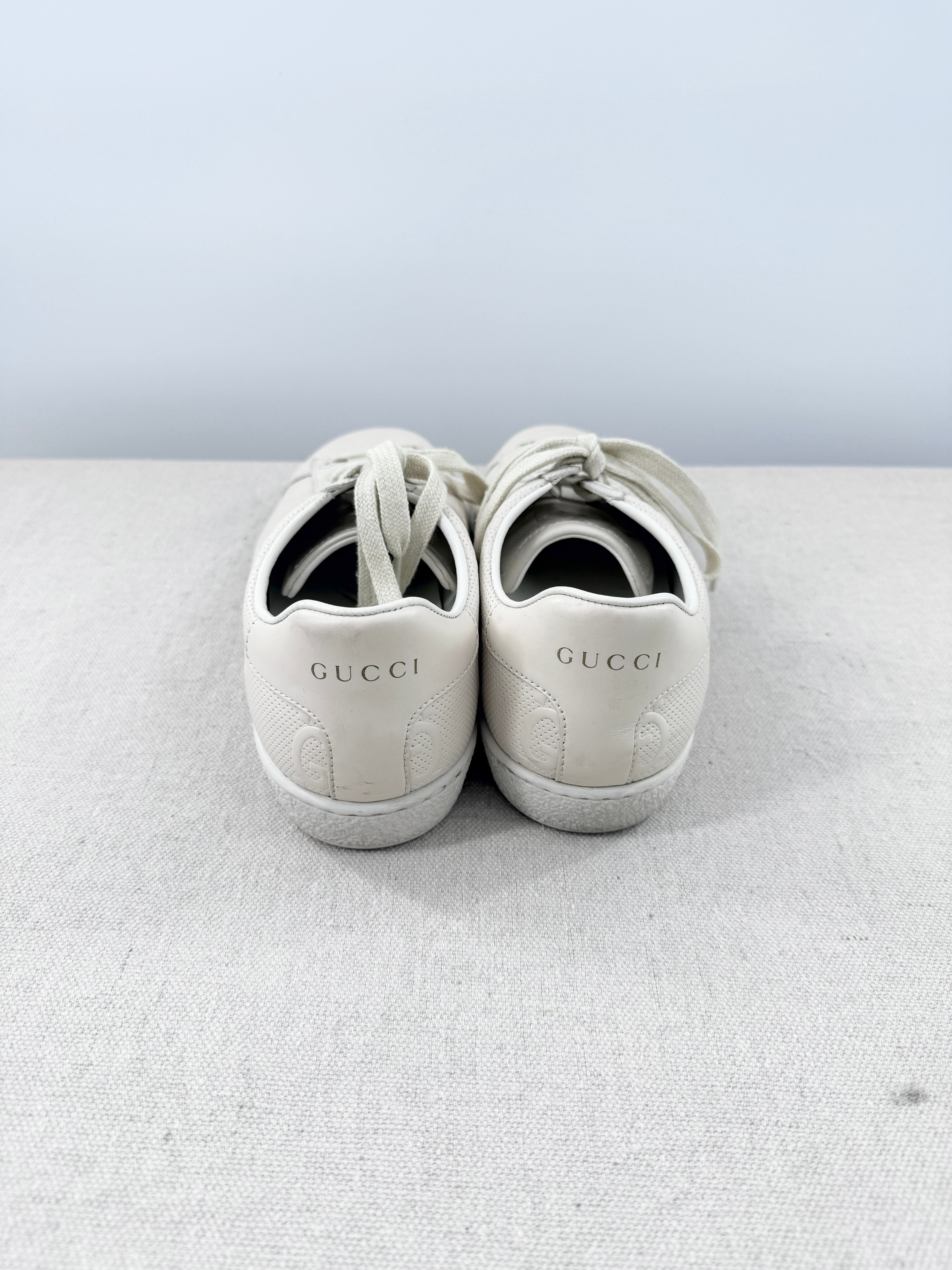 Gucci Ace GG Embossed Leather Low Top Comfort Sneakers Cream Women's Size EU 36