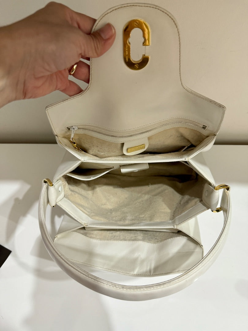 exterior: has some corner wear, light scratches on hardware, light staining.