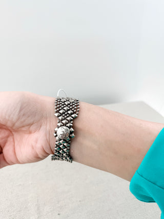 Sergio Gutierez liquid metal silver mesh bracelet with stone