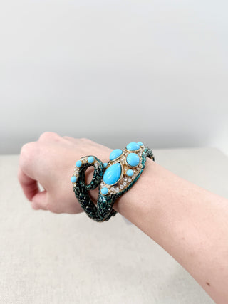 Roberto Cavalli Snake-Shaped Turquoise Cabochon Stones Cuff Bracelet