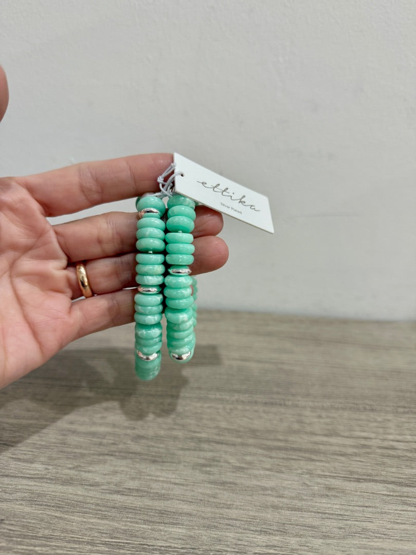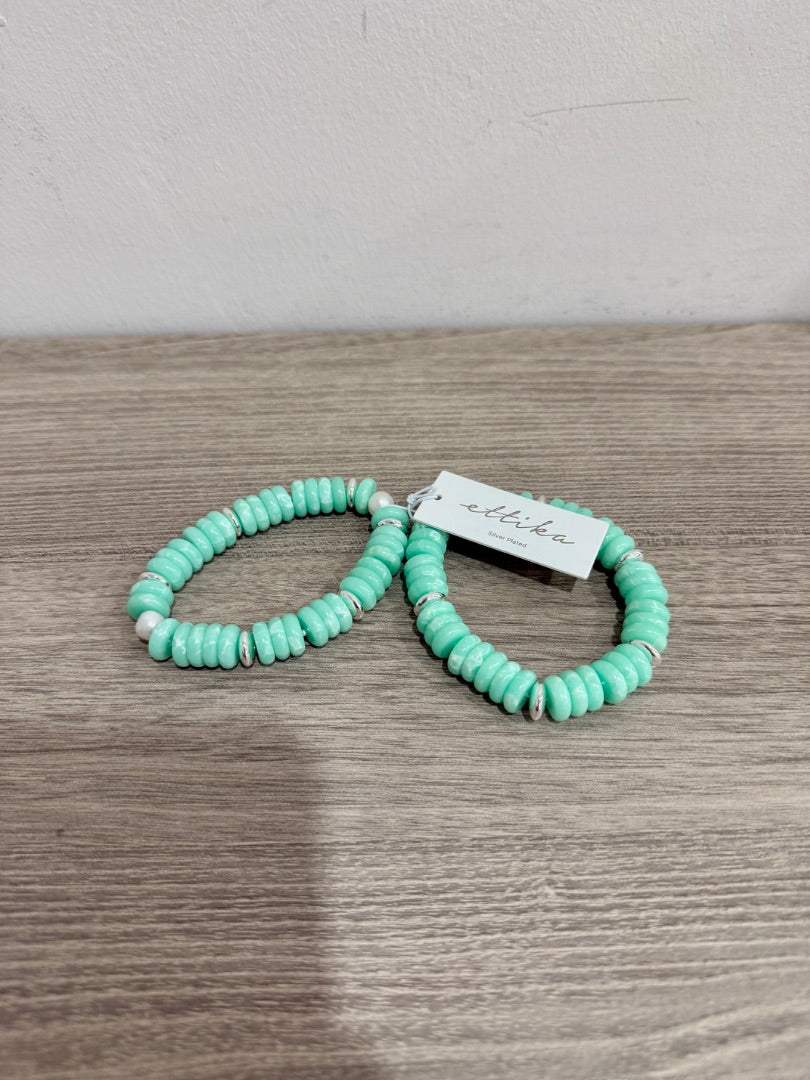 NWT Ettika Saint Tropez Stretch Stack Bracelet Set Seafoam Stone with Silver Plating