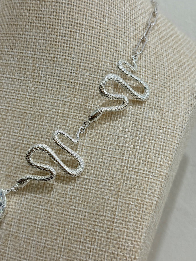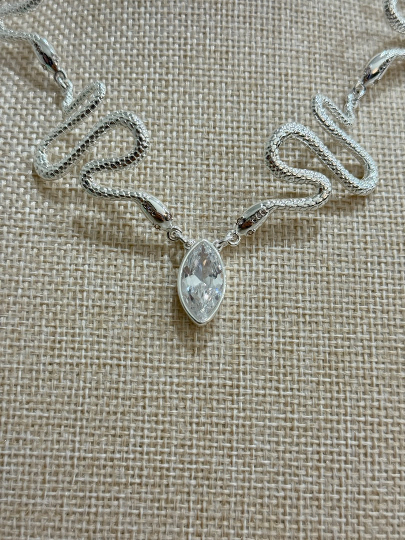 NWT Ettika Serpentina Choker Necklace Clear Crystal with Silver Plating