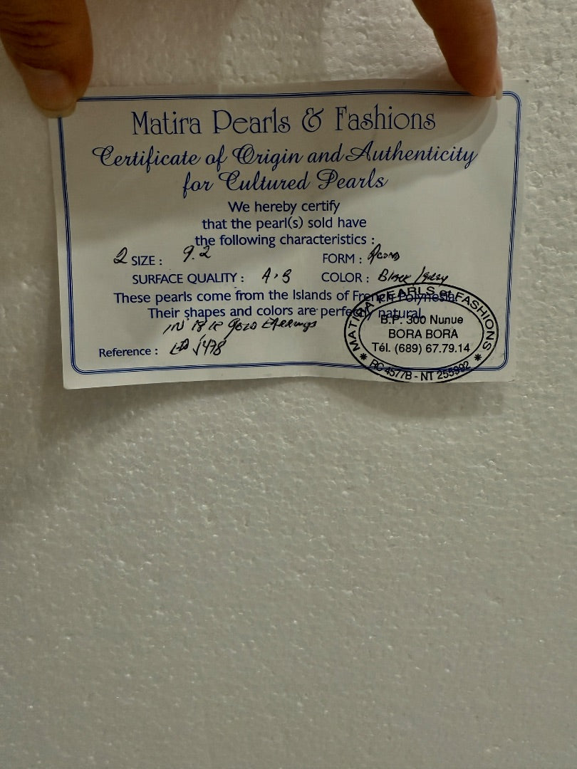 Matira Bora Bora Gold Plated Black Genuine Tahitian Pearl Dangle Earrings