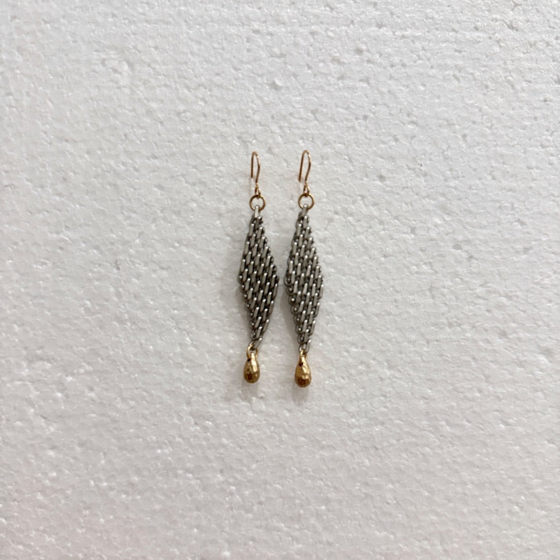 Mesh Chain Flapper Hook Earrings with Nugget Drop Silver/Gold