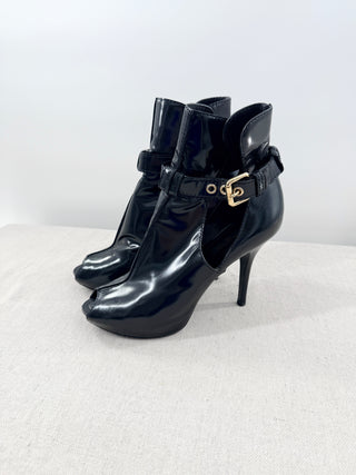 Vintage Louis Vuitton Patent Leather Stilettos Platform Ankle Boots Black EU 37