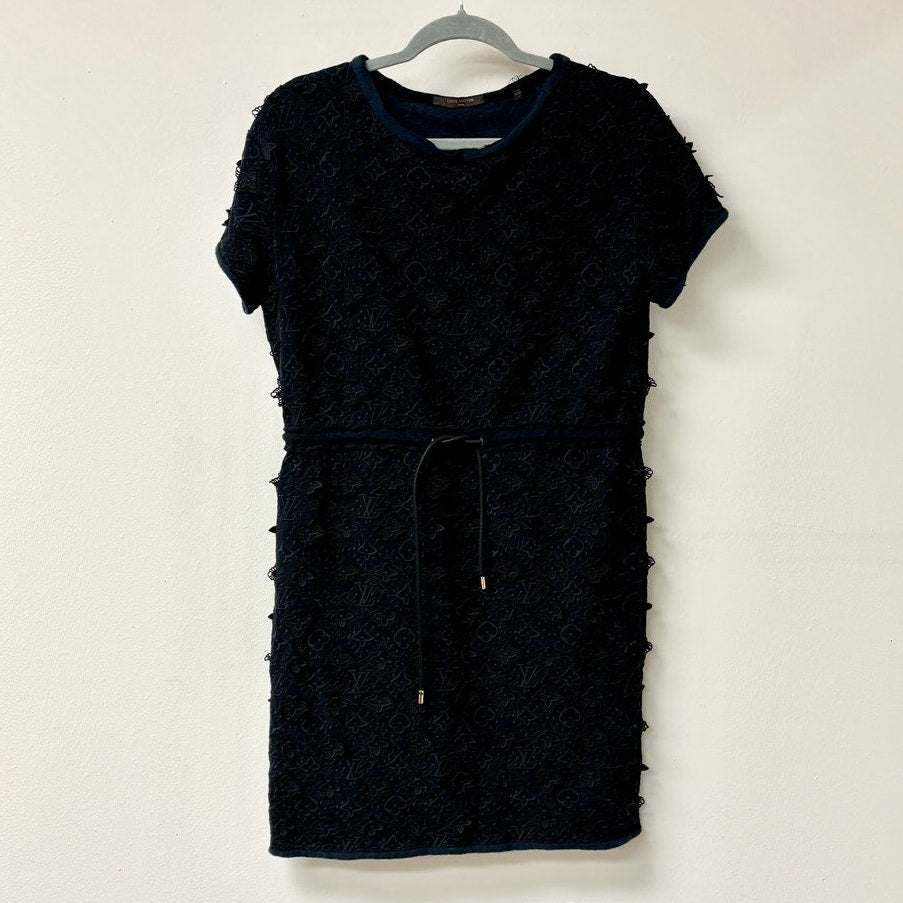 Louis Vuitton Monogram Embroidered Short Sleeve Shift Mini Dress Black Women's 4