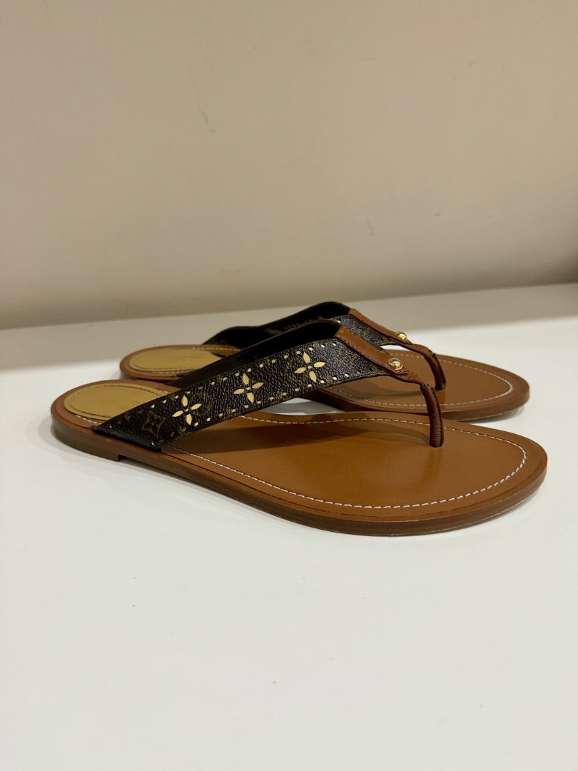 Louis Vuitton Monogram Canvas Sunny Flat Thong Sandals Cacao Brown Women's 40