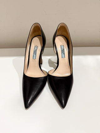 Prada Leather Pointed Toe Stilettos Heel D'Orsay Pumps Black Women's EU 36.5