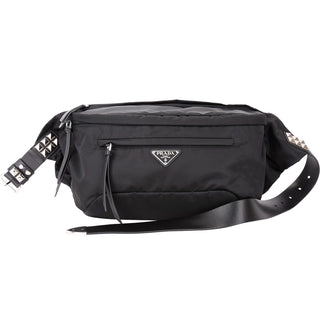 Prada Silver Studded Nylon Chest Shoulder/Waist Belt Bum Bag Black