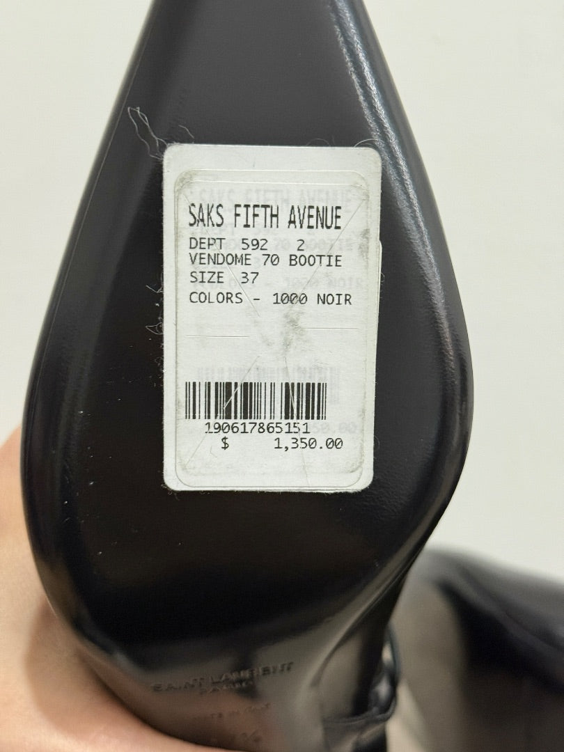 NWT Saint Laurent Vendome 70mm Pointy Stilettos Leather Ankle Boots Black 37.5