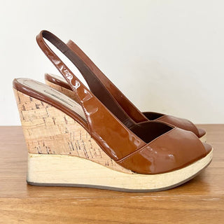 MIU MIU Slingback Peep Toe Wedges Platform Sandal Brown Women's Size 36 / 6
