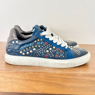 Zadig&Voltaire Suede Leather Studded Jungle Clous Sneakers Blue Womens Sz 37/7