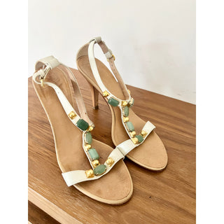 Giuseppe Zanotti Leather Beaded Embellished Stiletto Sandal White Womens Sz 36/6