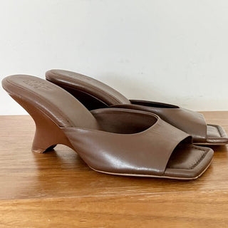Gia Borghini Square Toe Sculpted Heel Sandals Brown Leather Womens Size 40 / 9.5