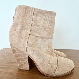 Rag & Bone Canvas Block Heel Ankle Booties Tan Women's Size 39 / 8.5