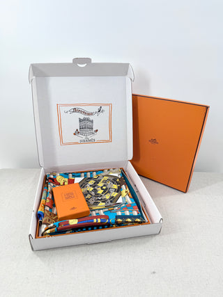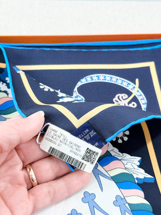 NWT Hermes Carre Twill Le Sacre Des Saisons Square 100% Silk Scarf Blue Size 90