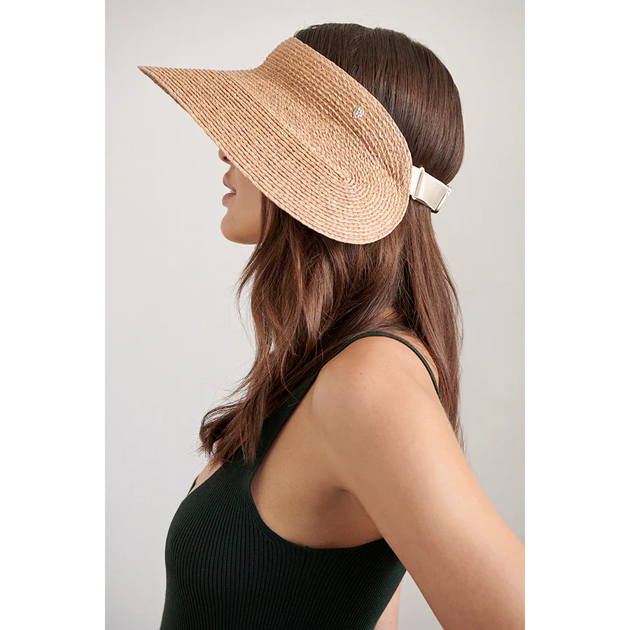 Helen Kaminski visor hat, Maris raffia visor, raffia straw sun visor, Helen Kaminski hat, women's sun visor hat, designer straw visor, raffia beach visor, summer sun hat visor, resort wear hat, lightweight straw visor, luxury sun visor, beach vacation hat, wide brim visor hat, elegant summer accessory, Helen Kaminski Maris visor