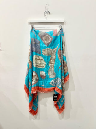 Vintage Dior Echarpes Autumn Green Hues Blue Floral Paisley Silk Scarf 31''x 31'