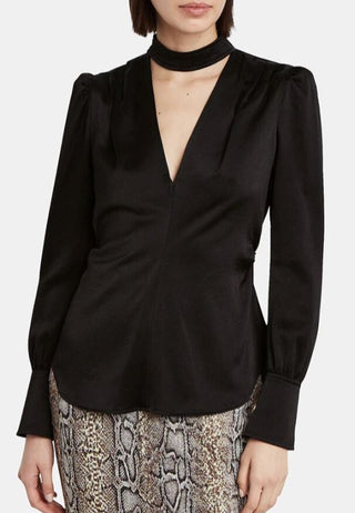 NWT A.L.C. Hirsch Keyhole Pleated V-Neck Crepe Blouse Top Black Women's Size 0