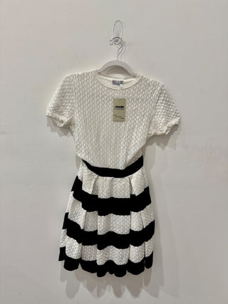 Red Valentino Striped Pleated Knit Crochet Mini Dress White Black Womens Small