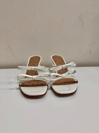 RED Valentino Patent Leather Kitten Heel Strappy Sandals with Bows White EU 37