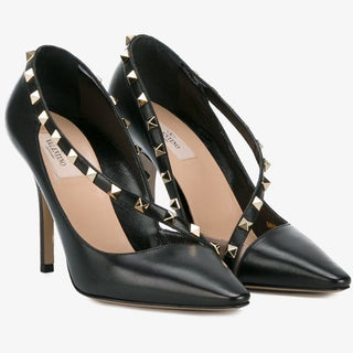 Valentino Garavani Rockstud Calfskin Stilettos Pumps Black Women's Size 39.5 / 9