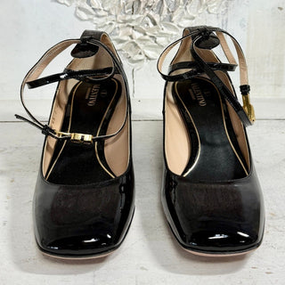 Valentino Garavani Tan-Go Patent-Leather Ankle Strap Pumps Black Women's 40/9.5