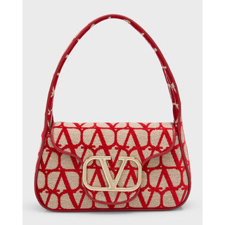 Valentino Garavani Iconographe Loco Canvas Hobo Bag Naturale Rosso V Size Small