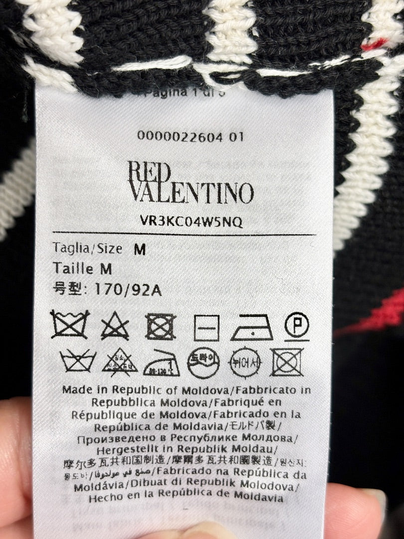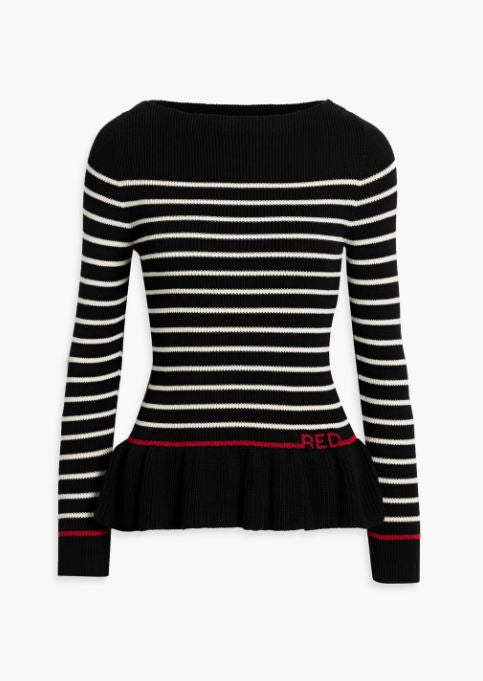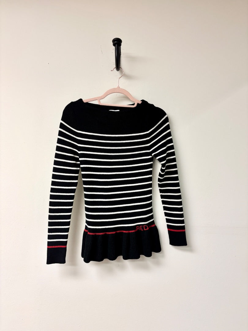 Red Valentino Ruffled Hem Ribbed-Knit Sweater Striped Black Women's Size Medium