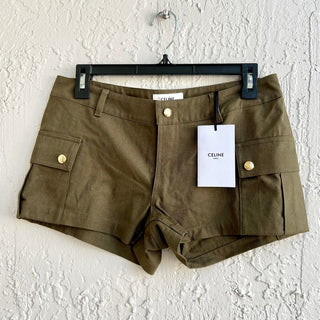 NWT $800 Celine 100% Cotton Slim Fit Cargo Mini Short Khaki Women FR 36 / US 4